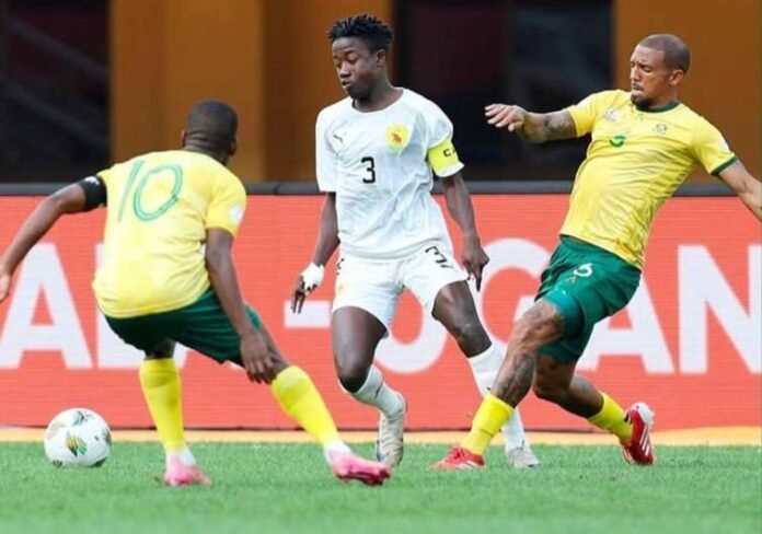 Neo Maema profite d’une offrande millimétrée de Thabiso Kutumela pour ouvrir le score d’un sang-froid remarquable. Les Sud-Africains, galvanisés par ce départ idéal, imposent un pressing haut et étouffent temporairement la Guinée.