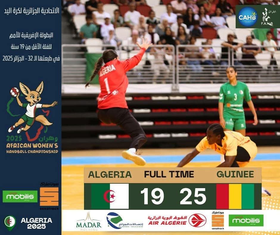 La troisième victoire pour le Syli junior de Guinée contre l’équipe algérienne sur un lourd score de 25-19. Cette victoire du Syli Handball qualifie la Guinée pour les demi-finales du Championnat d’Afrique Féminin U19 de Handball qui se joue à Oran, en Algérie.