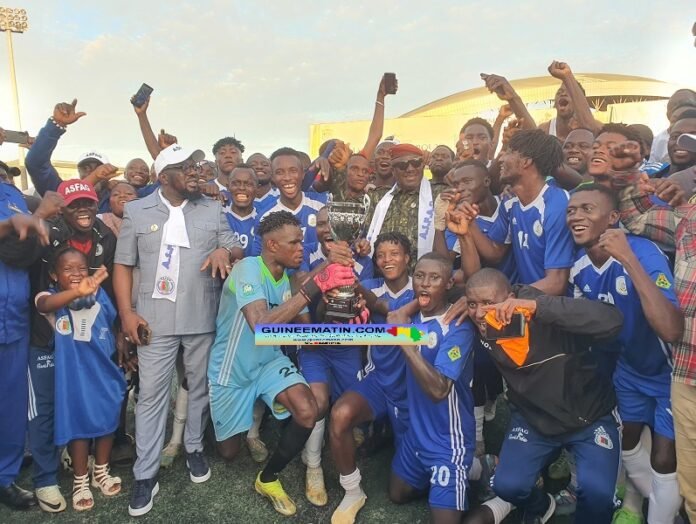 L’Association des Forces Armées de Guinée (ASFAG) a réalisé un exploit historique en s’adjugeant le titre de championne de la Ligue 2 Pro guinéenne ce mardi 30 septembre 2025, au terme d’un duel épique face au Karfamoriah FC, en finale. Les deux équipes, leaders de leur poule respective et déjà promues en première division, se sont neutralisées durant le temps réglementaire (0-0), mais ce sont les militaires qui ont fait preuve de plus de sang-froid lors de la séance des tirs au but, s’imposant 7 tirs à 6. Cette victoire vient couronner une saison exceptionnelle, l’ASFAG terminant le championnat invaincue, a appris Guineematin.com à travers un de ses reporters.