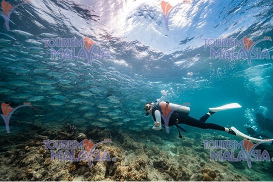 Dans l’Etat sud de Johor, les iles Sibu, Rawa et Aur sont tout aussi captivant, chacune possédant son propre charme et charactère. Elles attirent les plongeurs grâce à leur abondance de coraux et leurs attractions sous-marines. Dotées d’une biodiversité marine enviable, les îles de Sabah (Sipadan, Bohey Dulang, Mabul, Layang-Layang, Kapalai et le parc marin Tunku Abdul Rahmane) sont largement reconnues comme certains des meilleurs sites de plongée de la région. Pulau Sipadan, situé en plein cœur du bassin indo-pacifique, l’habitat marin le plus riche au monde, Rate Das est l’un des meilleurs sites de plongée au monde. Kapalai et Mabul sont également très prisés pour les activités de « muck diving », un terme de plongée utilisé pour désigner la recherche de petites espèces marines rares et exotiques. A Sarawak, les eaux au large de Miri sont connues pour la plongée dans les récifs. Le Parc Marin de Labune est célèbre pour la plongée sur épaves, en particulier celles de la Seconde Guerre mondiale.